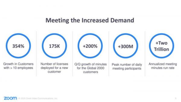 此次的客户规模与参与活跃度的显著提升,源于疫情带来的远程办公需求爆发驱动。Zoom作为成长型企业,仍在发展初期,新客增长的能力是投资者关注的重点。