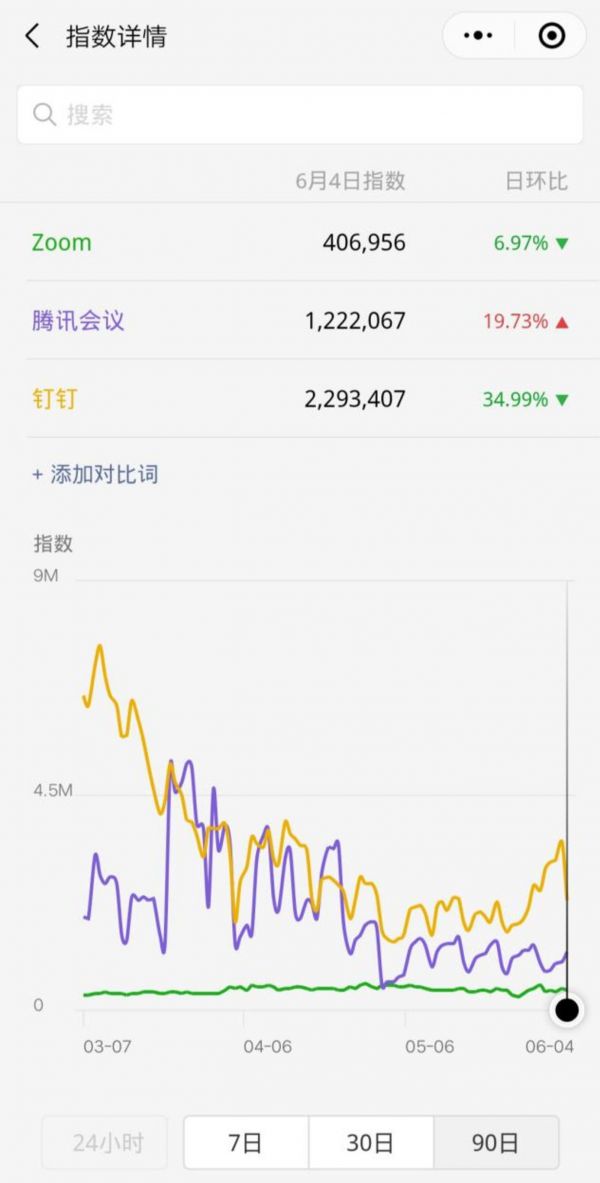 Zoom关闭了在中国的个人用户注册,基本上选择了放弃中国C端市场。但是中国市场竞争激烈,Zoom其实并不为大多数人知道,在微信指数中,Zoom的热度远远低于腾讯会议、钉钉。