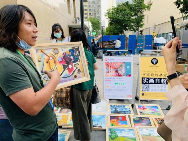 摆摊算是个新尝试,这些画都是我们的同学创作的,甚至来帮忙卖画的都是学生,这些年下来大家都有了感情。如果以后同学们愿意把自己的作品推向市场,我们就独立设置一个项目,长期做下去,如果政策允许,我们肯定继续做,不会放弃任何市场机会。