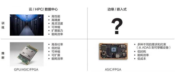 训练和推理对于功耗和通用性的要求不同。我们观察到,训练过程基本是在云端,而推理过程既存在于云端,也存在于边缘端,这背后是源于不同的应用场景对功耗和通用性的要求不同。