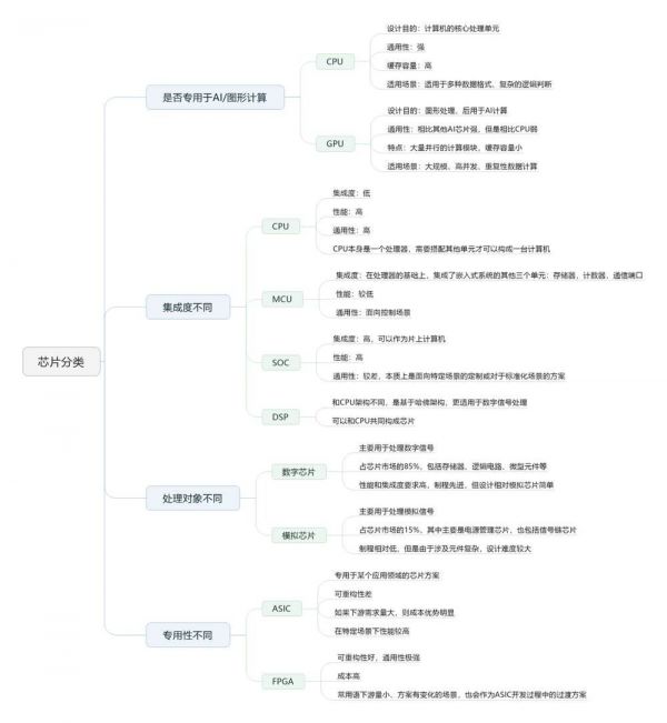 到目前为止,对目前主流的芯片概念做了区分和厘清,汇总一下,做成下图的思维导图: