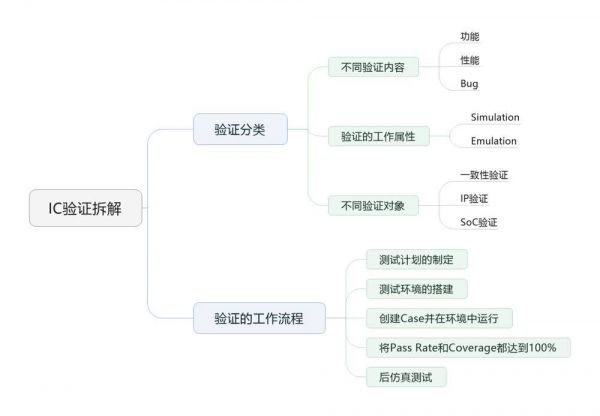 验证的工作流程分为几步:测试计划的制定、测试环境的搭建、创建Case并运行,将Case的通过率和覆盖率优化至100%,然后做后仿真测试(即Emulation)。
