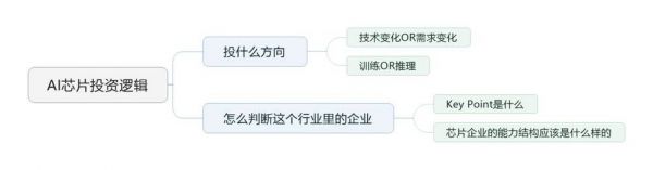 最后一部分,我想讲一下我对于AI芯片行业的投资逻辑,分为两个部分:投什么方向,怎么判断企业。如下图: