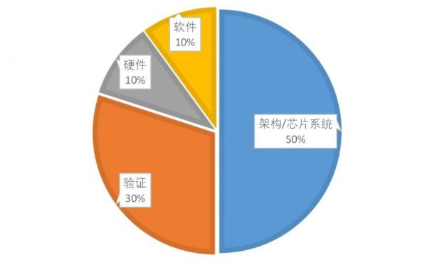 着重讲一下验证。验证并不是一个单独的环节,它穿插在前端设计、后端设计的每一步里。验证对于IC设计来讲非常重要,因为其实芯片工程师跟我们普通人是一样的, 也会有天马行空的想法,但是究竟能不能做出来,以及每一步工艺究竟有没有实现设计功能,都需要验证团队去做验证。有时候,验证人员在芯片企业的研发团队中,占比可能会超过30%。