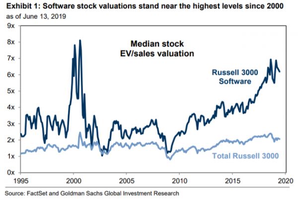 高盛首席美国股票策略师戴维·科斯廷(David Kostin)在报告中称:“由于市场集中度越来越高,监管风险将持续存在,并可能最终拖累科技公司的基本面。如今,与历史记录相比,科技公司的估值溢价过高。尤其是软件股,当前的估值水平是互联网泡沫以来的最高水平。”