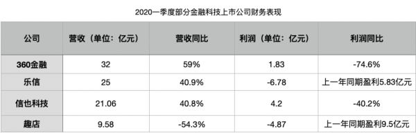 6月以来,360金融、乐信、趣店以及信也科技等上市金融科技公司们陆续公布了自己的2020年一季报。