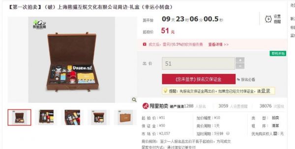 6月3日,上海熊猫互娱文化有限公司在阿里拍卖上线了一批福袋等拍品,起拍价51元起。据悉,此次拍卖所得款项将用于公司破产清算。