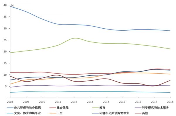 公共管理和教育占比超过一半