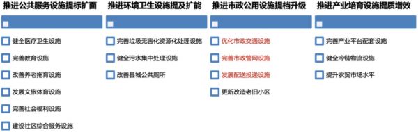 此外,当前各地城乡一体化建设主要围绕着公交客运、供水管网、文体设施、安置房进行开展,后续相关围绕县域基础设施的消费性投资将不断加大。
