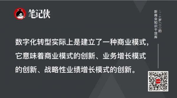 简单讲就是,数字化转型实际上是建立了一种商业模式,它意味着商业模式的创新、业务增长模式的创新、战略性业绩增长模式的创新。