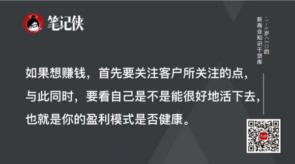 如果想赚钱,首先要关注客户所关注的点,与此同时,要看自己是不是能很好地活下去,也就是你的盈利模式是否健康。