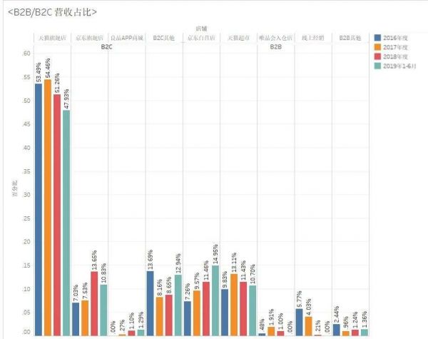 而在看到「三只松鼠」走线上的差异化策略卓有成效后,老品牌们也纷纷跟进拓展线上市场。从良品铺子的财报中可以看到,其线上业务占比最高同样为品牌天猫旗舰店,2016 年~2018 年比重分别达到线上业务的53.48%、54.46%、51.26%。