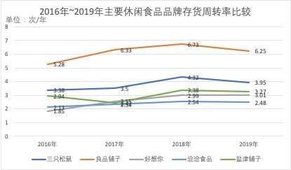 2016~2019年主要休闲食品品牌存货周转率比较
