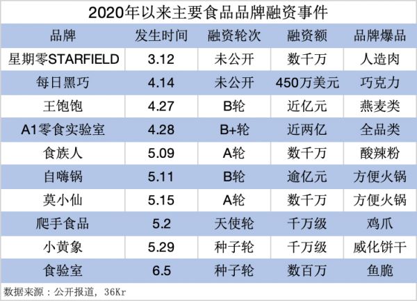 2020年以来主要食品品牌融资事件
