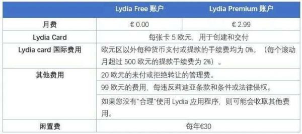 图:Lydia Free与Lydia Premium套餐费用