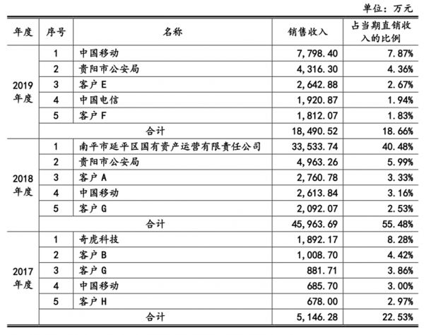 相反,2017年奇虎科技最大直销客户,占当年直销收入的8.28%;而在2018年和2019年均不在前五大直销客户之列。