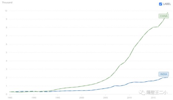 1998-2018年10年从 $828到 $9770翻了约12倍,同比印度10年从$413到$2009只翻了约4倍,按照现有的 GDP 增速,估算印度达到中国2018年的人均GDP需要15-20年,前提是不出现大的经济萧条和自然灾害,比如这次疫情。