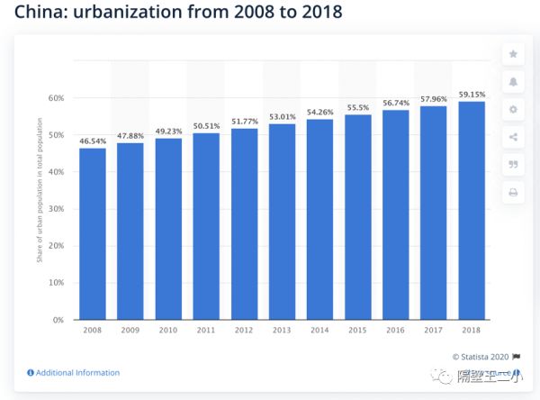 城镇化达到50%的城市人口需要大概25年。