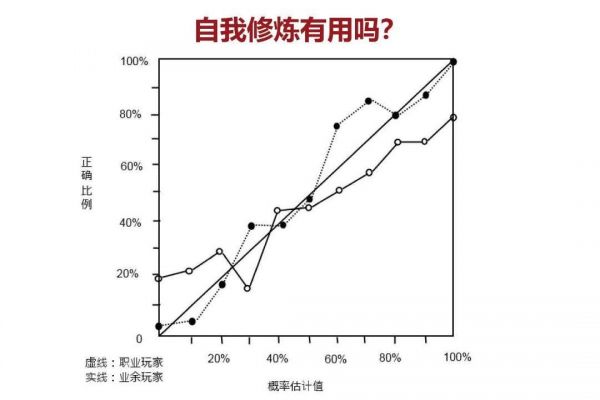 我们来看一个有趣的现象。在上图中,实线代表某类业余玩家,虚线代表对应的职业玩家。我们发现,在20%-80%的区间内,职业玩家和业余玩家的概率估计值并无多少差别,但在0和100%这两种极端情况下,二者的风险商完全不在一个层次上。因此,自我修炼看似平时用处不大,但一旦身处某种极端情况,有无修炼所表现出的能力和眼光是完全不一样的。而这些极端情况,往往也是可能对企业造成最大伤害的危急存亡时刻。