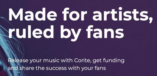 2018 年,「Corite」成立于瑞典,是一个真正让粉丝来投资艺术家的平台。该公司表示,「Corite」为艺术家而建立,由粉丝提供支持。艺术家在「Corite」发布自己的音乐及活动,从而获得粉丝的资金支持,还能够与歌迷一起分享成功。