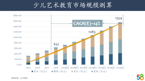 根据测算,少儿艺术教育的市场规模为千亿级别,年复合增长率达到14%。详述如下: