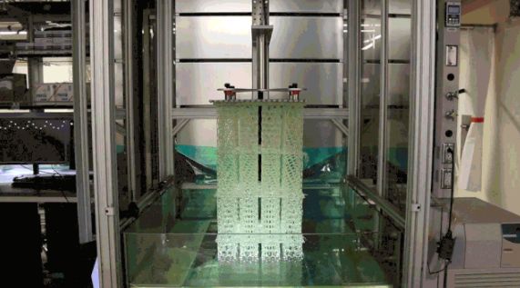 在这一技术的基础上,美国西北大学的化学家Chad Mirkin及其同事研发出新的高速树脂3D打印机,比2015年时的设备又得到了十倍的速度提升。Mirkin选择将一层清油泵到容器的底部以阻止高分子反应。同时这层油还起到了冷却剂的作用,将带走打印过程中产生的热,防止打印出的部件变形。这也意味着这种打印机不仅仅可以打印厌氧的树脂,为3D打印打开了广阔的新材料空间。