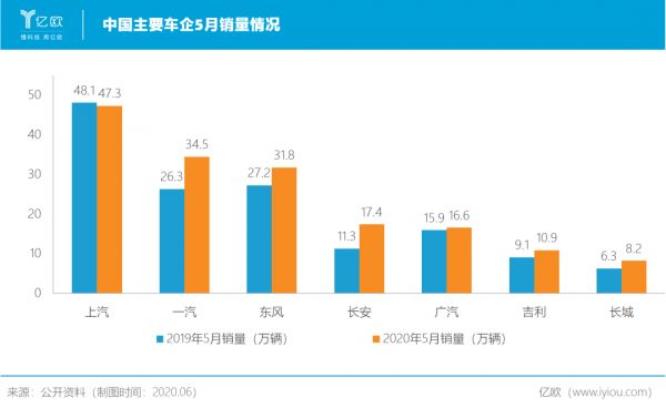 在各行业从业者的努力,市场确实有所恢复。今年5月,销量前十的乘用车企业中,有七家增速为正。