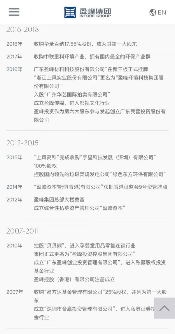 就连贝贝熊这样的消费品牌,盈峰也有投资布局。但在所有公司中,只有两家上市公司,一家是环保类企业,另一家就是华录百纳。