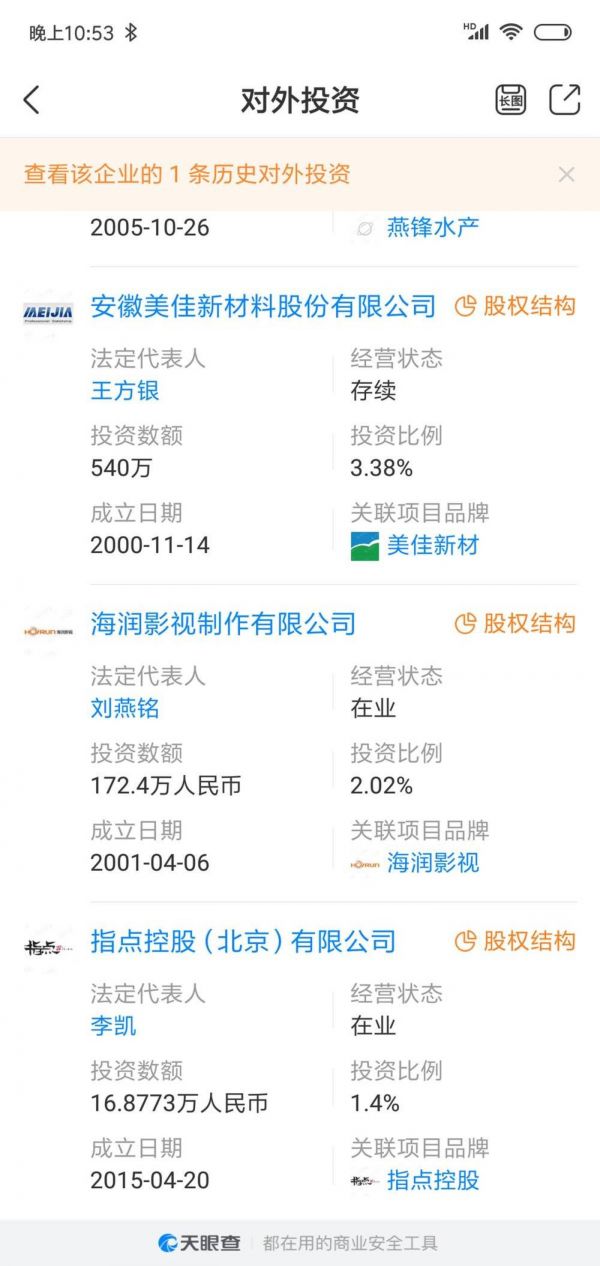 在明星艺人方面,盈峰基金投资了唯饭APP的母公司,深圳互娱网络科技有限公司。