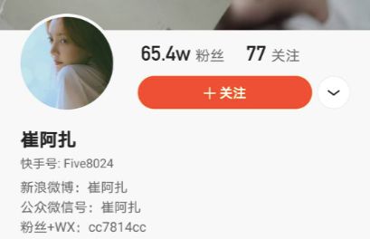 说白了,不同的平台,受众的调性不一定完全相同。在YY拥有超过600万粉丝的崔阿扎,在快手平台上就只有65.4万粉丝,只有YY的十分之一。