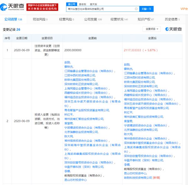 近日,华为全资子公司哈勃入股了纵慧芯光(Vertilite)。天眼查数据显示,常州纵慧芯光半导体科技有限公司发生投资人变更,新增股东哈勃科技投资有限公司,后者为华为投资控股有限公司的全资子公司。此前耀途资本参与了纵慧芯光的B轮融资。