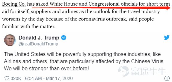 接下来的剧情就是,在资本市场上赚的盆满钵满的管理层开始向政府求救,请求600亿援助用以支撑航空制造业供应链。而凭借在美国经济中的地位,特朗普也不得不伸手救济波音这样的大型公司。