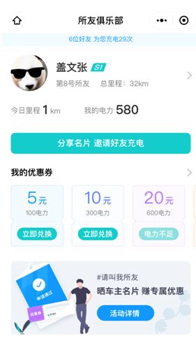 这其中社群建设是用户运营的重要手段。张佳将所乐的用户称作“所友”,搭建了“所友俱乐部”微信小程序作为更高优先级的用户运营。用户收到车之后,经过注册账号、激活车辆、绑定所乐电动APP和所友俱乐部小程序一连串步骤,将账号权限统一打通。所友俱乐部小程序同步所乐电动APP内的行驶里程,并形成用户名片。用户可以将其分享给微信好友或者微信朋友圈邀请好友充电,以此获得电力值。累积的电力值可以兑换成购买官方配件的优惠券,在所乐的微信商城购买。由此所乐将用户内容同时作为营销内容进行分发和投放,实现内容营销。