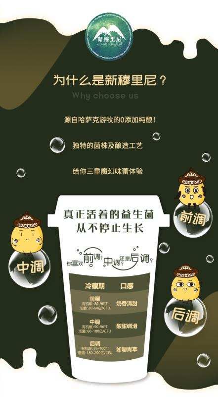创始人柯凯丽告诉36氪,明星产品哈萨克酸奶采用了哈萨克游牧民族酿造酸奶的工艺,0添加且原菌活性强,同时菌群的不断生长赋予了酸奶不同时期的三种风味。在“一奶三调”中: