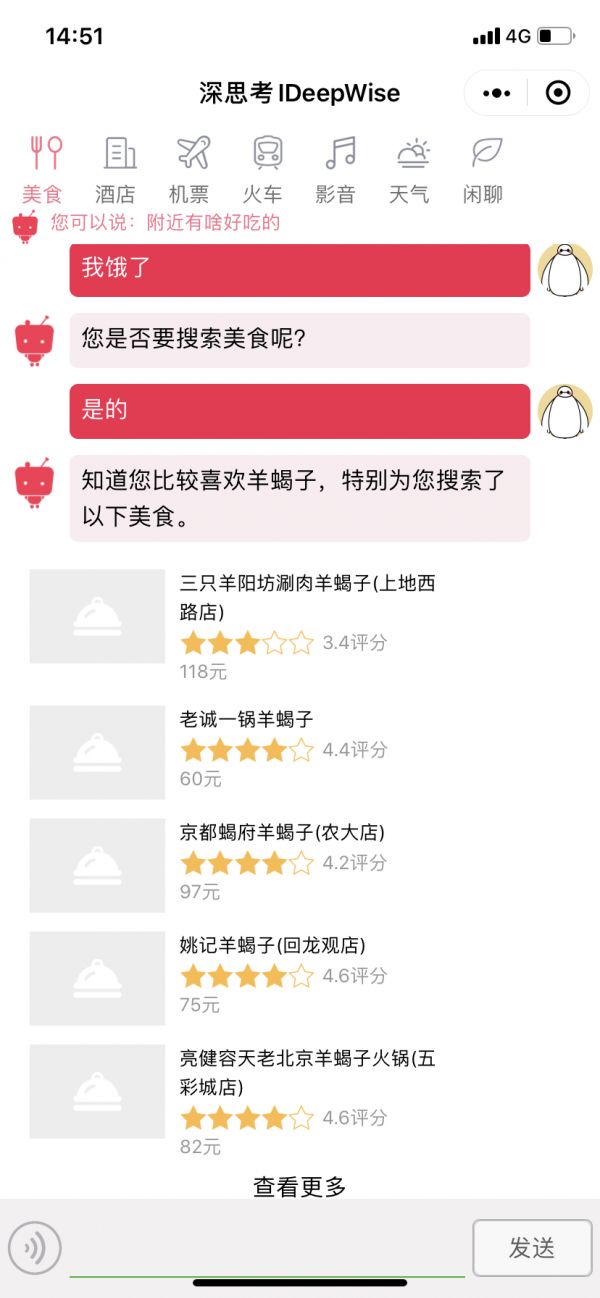 相比较上述人机对话的糟糕表现和体验,使用深思考深度语义理解与人机对话技术的产品,则体验和表现就相当优异,如下截图: