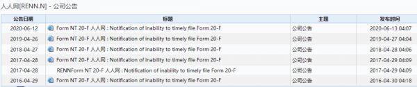 6月12日,人人网(NYSE:RENN)和人人公司旗下的开心汽车(NASDAQ:KXIN)同时发布公告称,不能按时提交截止2019年12月31日的年度报告。