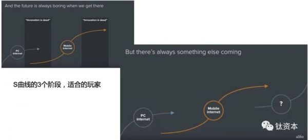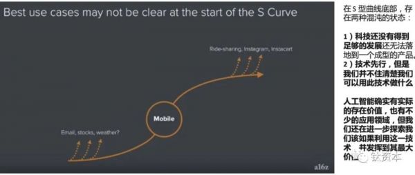 当到达某一个时间点以后会促成产业、技术和应用的结合,就是S的竖线,在这个时间点会出现很多创新的机会,这是最适合风险投资的阶段;