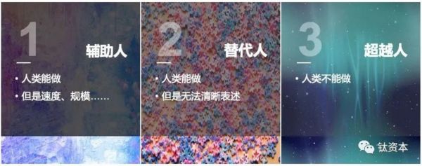 第三是超越人,有些任务人类是无法做到的,比如利用 AI来预测海洋的风暴并且据此来推断观察海里鱼类的游动情况等等。原则上讲,只要AI能在这三个方面发挥足够大的效果,就有投资的价值。