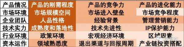 首先考虑产品是否存在刚需,其次是市场规模空间是否够大,第三是企业团队和创始人的人品性格。除此以外,产品竞争力、产品进化能力、知识产权保护等也都很重要,不过这些也要有先前的条件支撑才有意义。