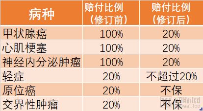 (重疾险修订前后部分病种赔付对比)