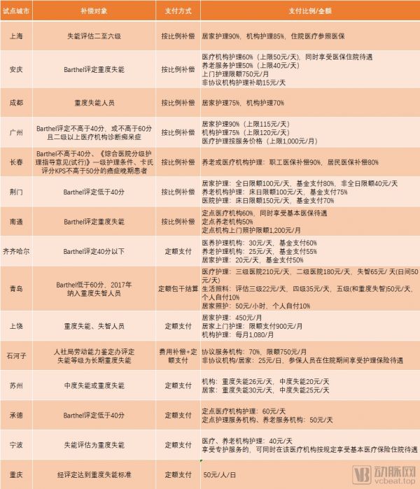 图为先期15个试点城市长护险的支付情况,动脉网整理