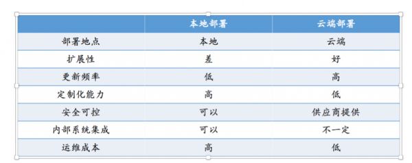 本地部署的优点主要包括高度定制化、可控安全性、方便集成内部系统、支持单点登入、企业直接获取并拥有数据以及开销相对透明等。同时,扩展性较差、运维成本高、升级迭代效率低等问题也是本地部署显而易见的缺点。