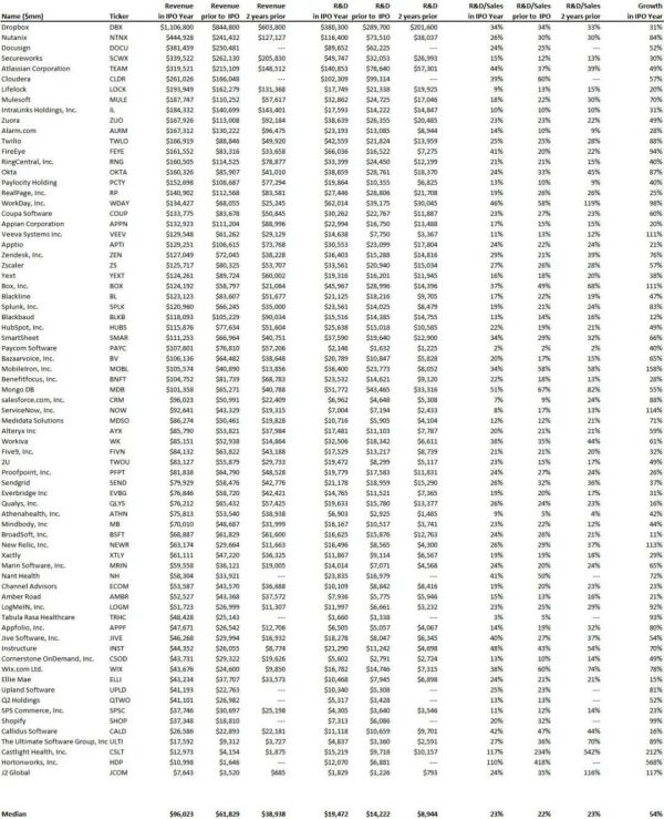 传统企业级软件以本地化部署为主,会有大量不同版本在客户侧,厂商需要投入大量的研发技术支持人员用于不同版本的维护支持,会造成较大的R&D投入。而反观SaaS,由于大多数采用多租户统一版本,在达到较高成熟度后,可以随着规模效应带来管理成本的下降。根据美股上市SaaS公司的费用统计,其平均R&D的支出在营收中占比维持在23%左右,考虑到SaaS公司的增长性以及确认收入和实际财务状况的偏差,R&D的占比会进一步降低。但是从数值来看,R&D费用支出并没有明显优势,这一方面是由于有一部分支出会在成本中体现,导致毛利水平提升,另一方面也是因为大多数公司仍旧会维持一定体量的研发团队,从而保障产品功能的快速迭代。