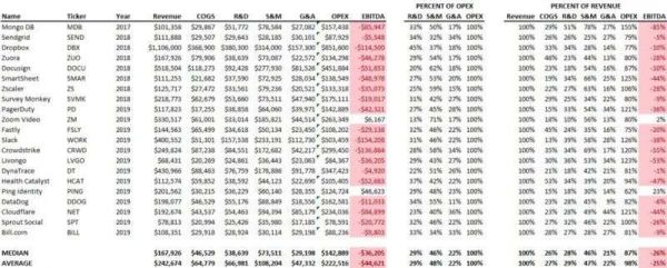 由于SaaS可以通过单一版本来服务所有客户,并且通过云的方式来降低日常的运维成本,因此SaaS的规模化效应相比传统软件会更加明显,这一点会体现在毛利率上。大部分SaaS公司达到成熟期后,平均综合毛利率在70-80%之间,在软件行业中属于较高水平(软件的毛利区间一般在30-80%),可以看到SaaS这种更为标准化的软件交付和产品形式的优势。