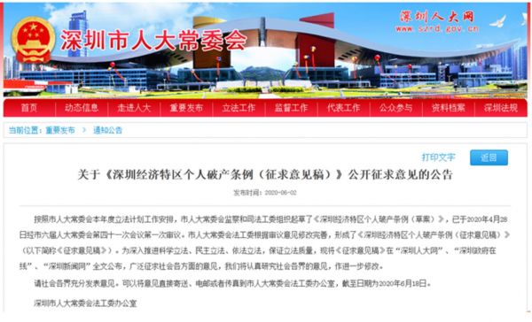 日前,深圳市人大常委会公布了《深圳经济特区个人破产条例(征求意见稿)》,正式向社会各界征求意见。“个人破产”制度的出台,离我们又进了一步。