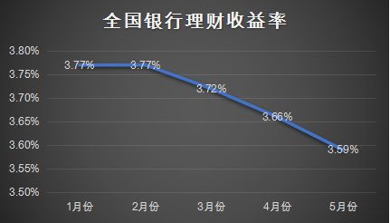 普益标准监测数据显示,5月份全国整体银行理财收益环比下滑7BP至3.59%,较今年1月份已经下滑18个BP。5月份共有332家银行发行了6914款银行理财产品,其中,封闭式预期收益型人民币产品平均收益率为3.80%,较上期减少0.08百分点,收益创近43个月新低。
