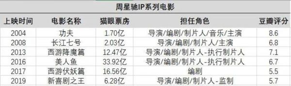 其中2019年业绩下滑严重,而自《美人鱼》之后,周星驰IP系列电影票房更是连年走低。