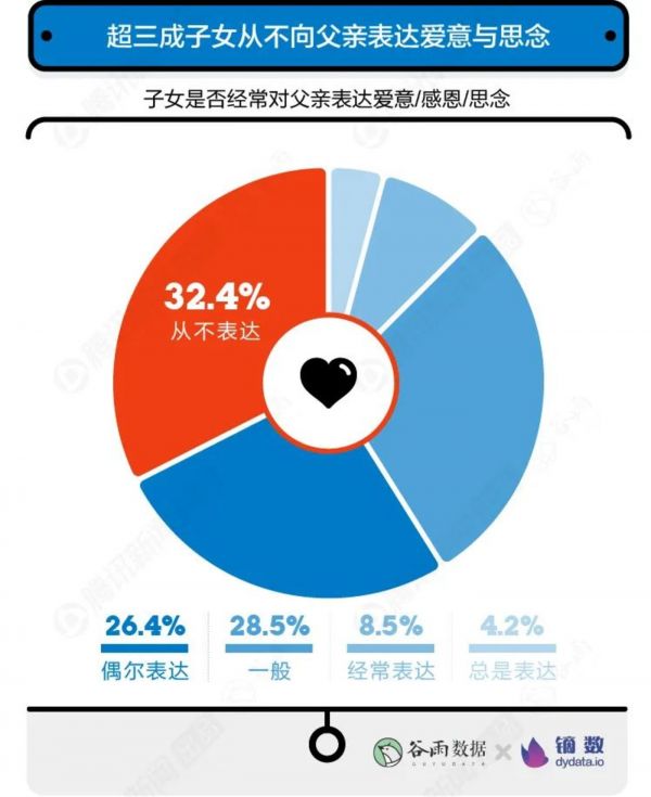 调查显示,32.4%的子女从不向父亲表达爱意或思念,占比最高。