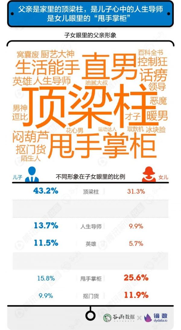 儿子眼中的“人生导师”,拯救世界的“英雄”,在俗话中“贴心小棉袄”的女儿们这里变成了“甩手掌柜”“抠门货”。