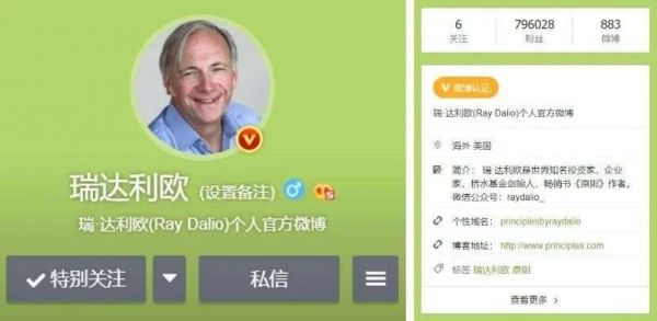 当然,本文你还能看到关于Dalio这个“可爱老头儿”一些有意思的话题:微博上的Dalio是他本人吗?Dalio最受欢迎的心灵鸡汤语录是什么?面对别人留言“讨厌他“,Dalio如何回复?